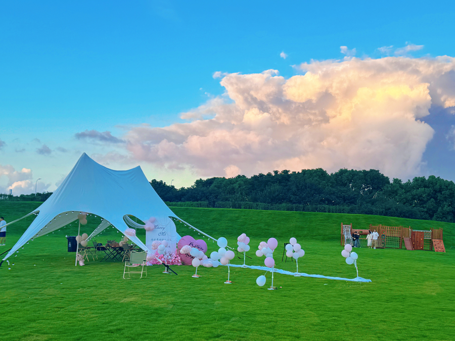 文化园内,召稼楼钟楼每日钟声回荡,重现古时“闻钟垦荒、听钟收工”的农耕场景;森藏Bloom农场内绿油油的大草坪成为孩子们的乐园,帐篷区温馨舒适,烧烤、窑炉披萨、篝火、滑草、萌宠互动等活动丰富多彩。从市区专程前来的周女士告诉记者:“朋友推荐这里,假期特地带家人过来体验,确实是‘遛娃宝地’,风景如画,随手一拍都很出片,大人小孩都玩得很开心,以后会常来。”